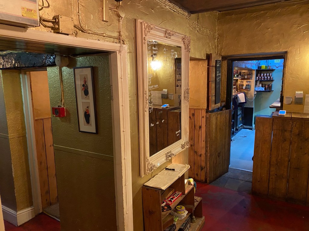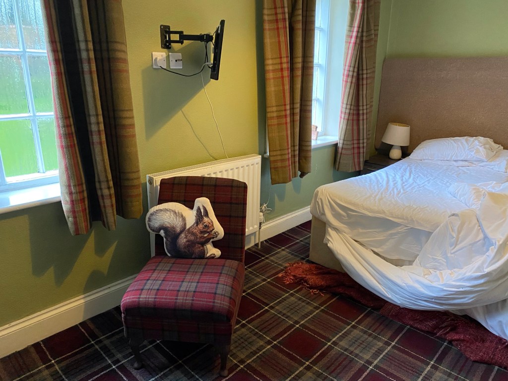 It started off well. The Horseshoe Pub pretty much epitomised the English country pub experience for me. I’ve mentioned the taxidermy and the multiple staircases going off at many different angles. There was also what looked like it would have been a very expensive Turkish carpet about a hundred years ago. Our room appeared to have been entirely upholstered in blankets, including blanket curtains in the bathroom, not shown here. Some of the walls were painted gold.