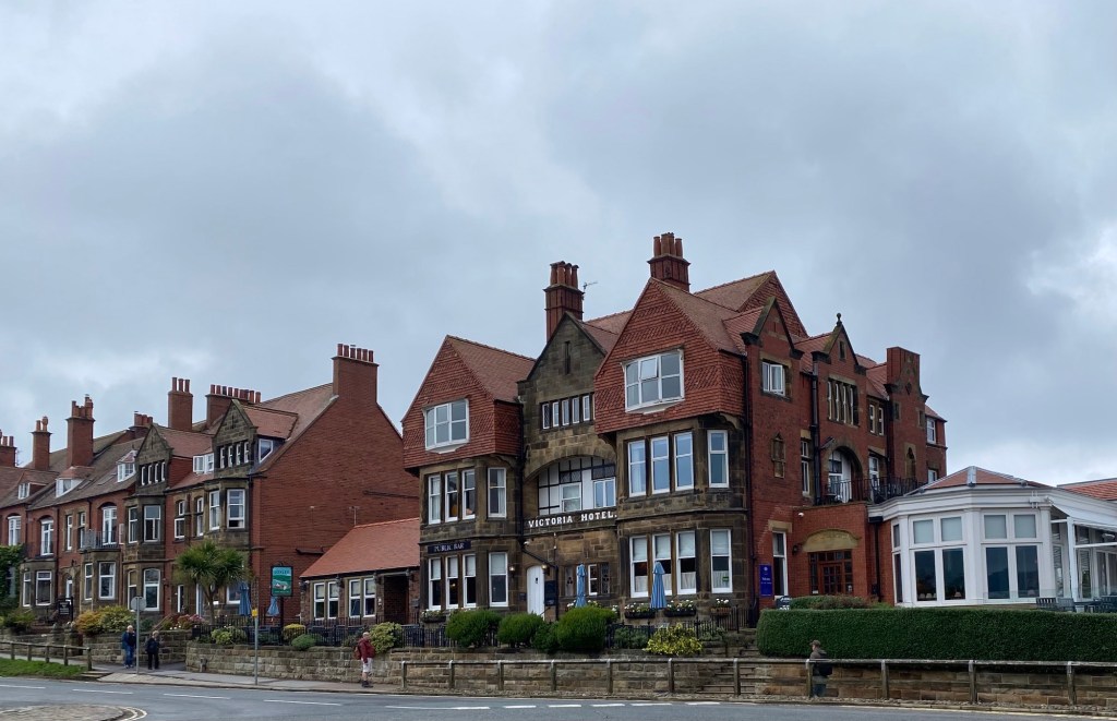 All good things must come to an end, and so our soaking wet boots took us down into the Victorian cliff top part of the town to check in to our accommodation, the Victoria Hotel. The trip wasn’t done yet though, we had to go down to the sea to cast in our pebble that we’d carried all the way from St Bees and dip our boots in the North Sea even though they probably didn’t need any additional moisture.