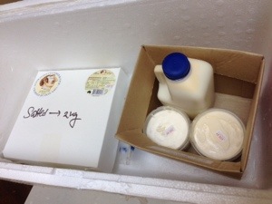 “You have to look after it” Pepe said. That didn’t involve reading it a bedtime story, as it turned out, just wrapping it up tightly every time you use it. “How far are you from home?” he asked. Daniela explained that we weren’t far, but we had undertaken the hazardous and windswept walk all the way from the IKEA car park. So he gave us a styrofoam box and lovingly loaded up his produce, tucking an ice pack in with it. We left him to look after his half tonne of freshly delivered fresh cream.