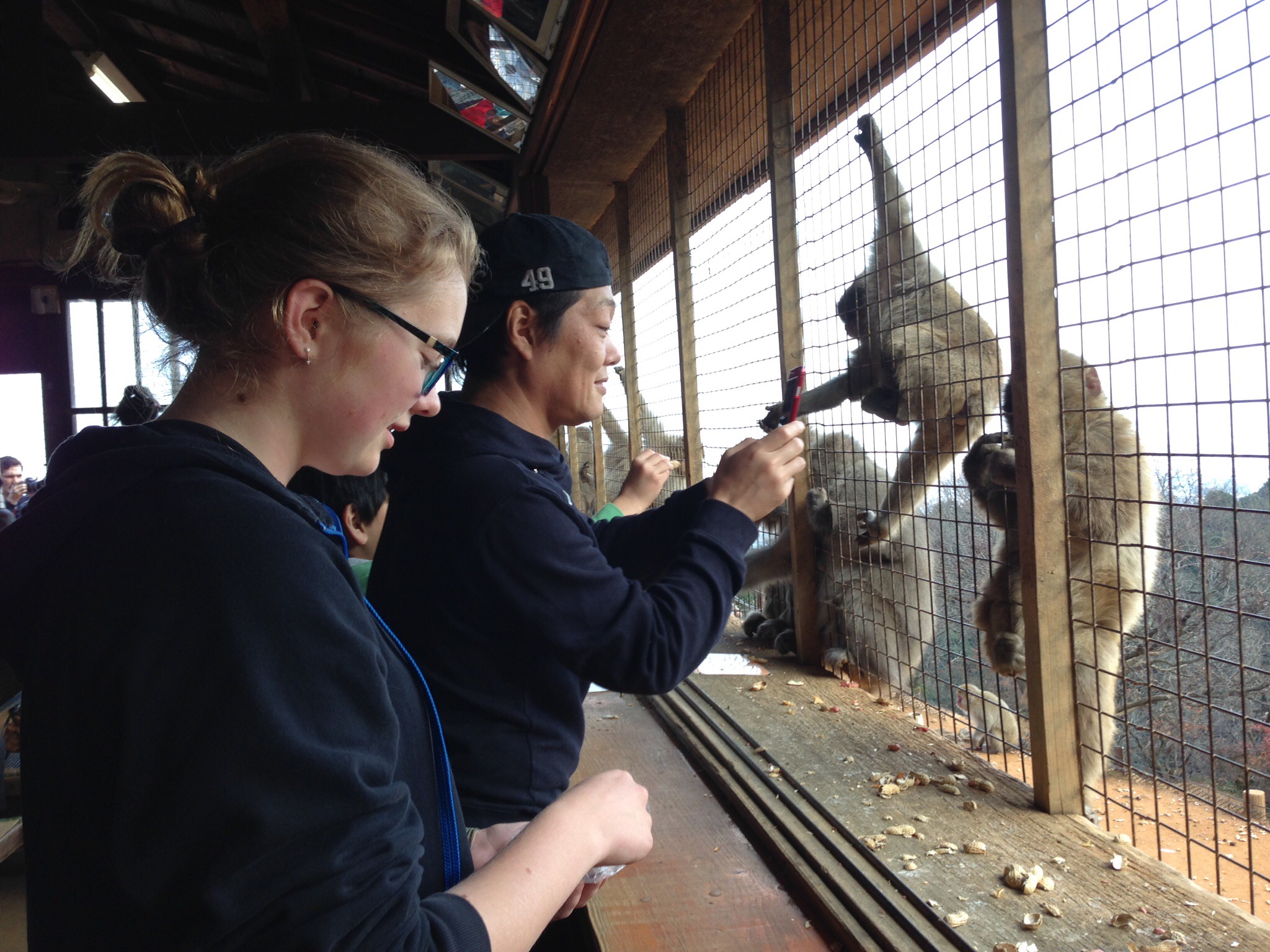 The Horror has been a bit disappointed to find that the Japanese don’t actually live on cucumber sushi, but he has managed to get a reasonable amount of it into him, principally from train stations and airports where the food is astonishingly good. The snack food available here puts Western countries to shame, and explains why we’ve only actually seen one morbidly obese Japanese person here. Onigiri, a rice triangle wrapped in seaweed with a tiny splodge of flavour in the middle, is my favourite food on the move, and generally costs about $1.50. A bowl of noodles in broth is standard lunch. The chicken nuggets are amazing, even the ones in packets in the frozen section of the supermarket. Everything is in tiny servings in separate plates of bowls and beautifully presented.