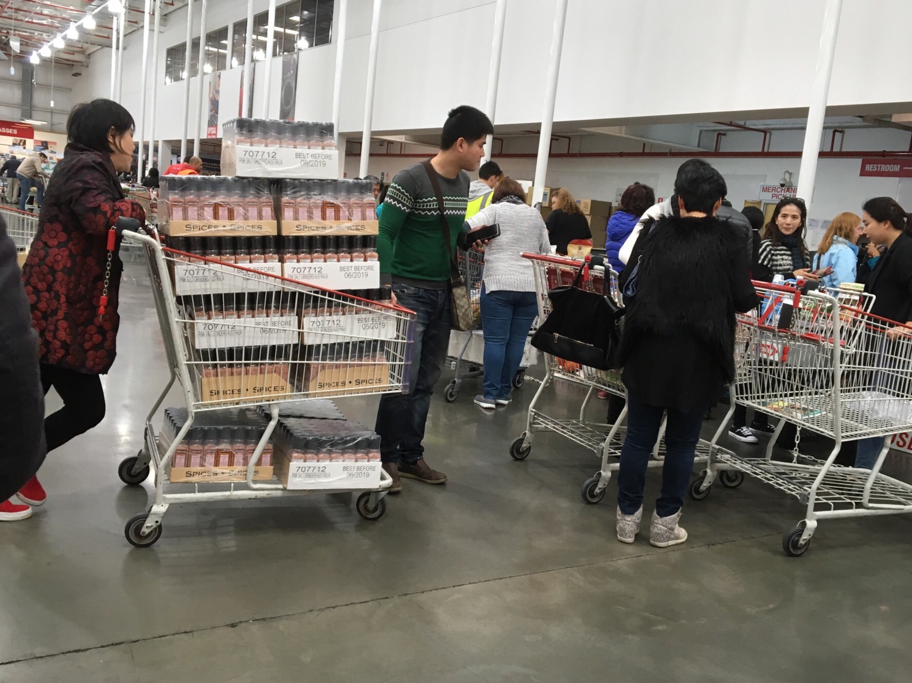 Costco has a lot of things, not just super sized supermarket fare, to which I’ll get in a moment. Mattresses, diamond rings, giant televisions, business luggage, faux antique furniture, about an acre of horrible plastic clothes, safes, pressure washers, compost bins, business luggage, drones, clothes steamers, a toilet seat with LED lights, presumably to improve your aim in the dark. Some good brands too, like Vitamix and KitchenAid. It has things that you never knew you needed.