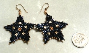 I got terribly terribly efficient and went through all of my beading magazines and scanned all of the patterns I wanted to keep into Evernote, and I highly recommend it. You see, in my new work area, or the Lair as I like to think of it, I have ample shelf space and no desire to put anything on it. So the magazines all went out, and now I have this terrific system of filed patterns, searchable with tags and everything. When one wishes to produce a necklace based on a string of black agate squares, one merely searches the tag Square, and there's a pattern from Beadwork 2010 that fits the bill perfectly. The pattern was for the red square in the middle, but it scales down beautifully to 8mm rounds with size 15s and 1.5mm cubes to make the silver squares either side of the centre.