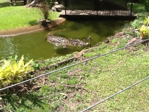 Also crocodiles. I have a theory that the reason every wildlife park in this part of the world has crocodiles is that to get some you just dig a pond and leave the gates open one night. You lose a few ducks this way, but you get an exhibit that every overseas tourist wants to see. Actually, most of them seem to have a couple that have been rehomed after stalking fishermen or eating the dog of a local councillor. The exhibits at this zoo were pretty big on the whole and were kept in breeding pairs, which results in the kind of exhibit we were treated to today. The Horror was more interested in what looked like a very long thin fairly obviously plastic snake on a fence in between two exhibits. This being Far North Queensland, of course it was real. Then we had the crocodile feeding, which I think has that old fashioned are we going to see someone seriously maimed today kind of feel. I love it. I got some good shots too, I’ll have to put together a Leaping Crocodiles series when I get home, after I’ve finished all the washing, restocked the cupboard and ironed the summer uniforms.